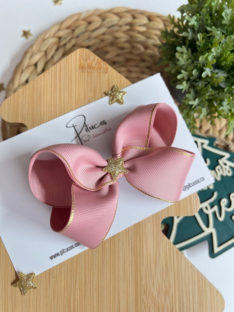Lazo elaborado en cinta palo de rosa con borde dorado.