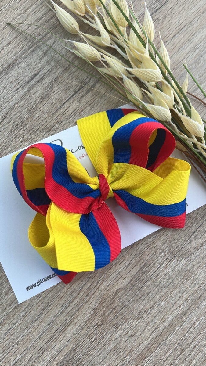 Lazo elaborado en cinta tricolor con los colores de la bandera de Colombia
