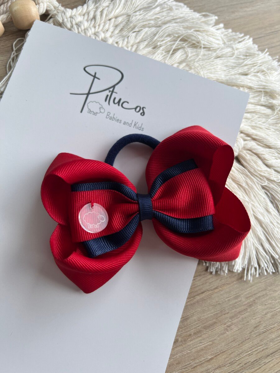 Lazo elaborado en cinta en colores rojo y azul oscuro. El lazo va sin la plaquita plástica