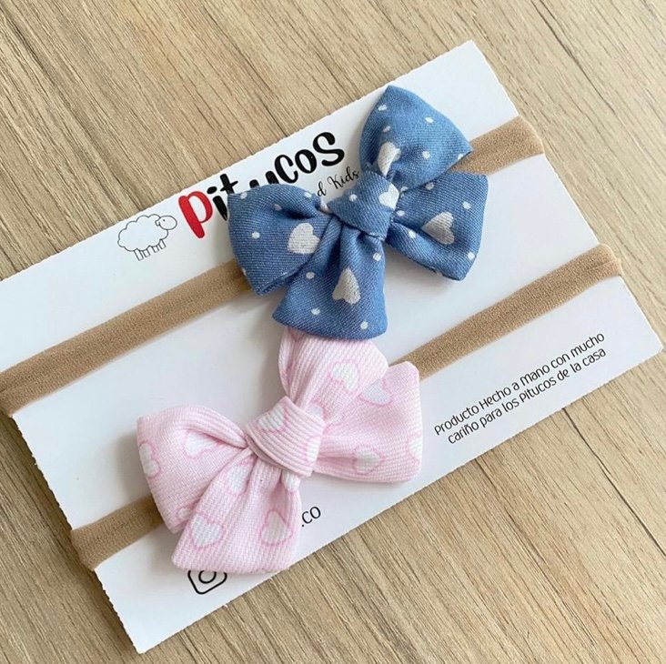 Balaca con moño elaborado en tela de algodón estampado de corazones.