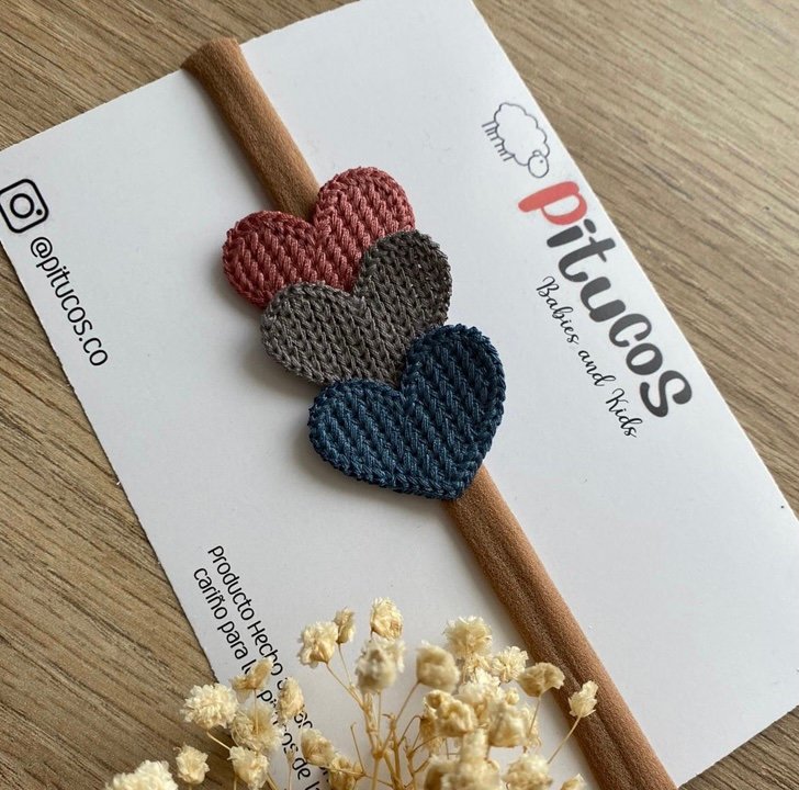 Balaca con aplique de 3 corazones tejidos