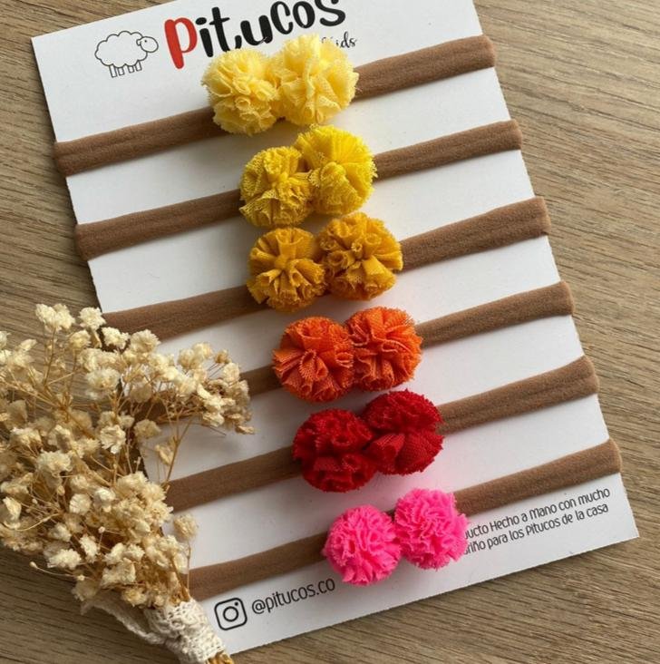 Mini pinza de 3 cm completamente forrada y 1 pompom de 2,5 cm.