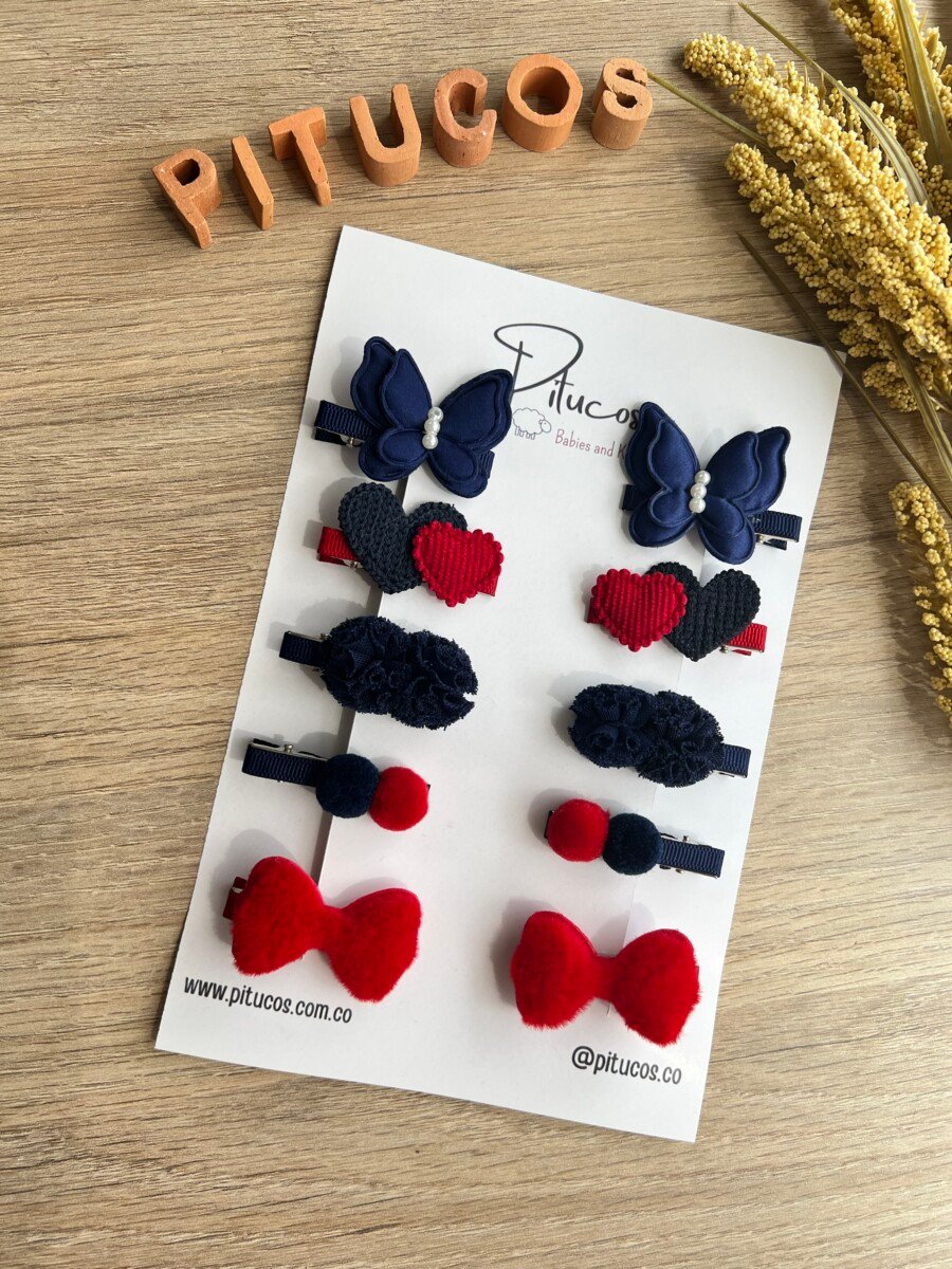 Kit contiene 10 pinzas de 4.5 Cm con diferentes apliques.