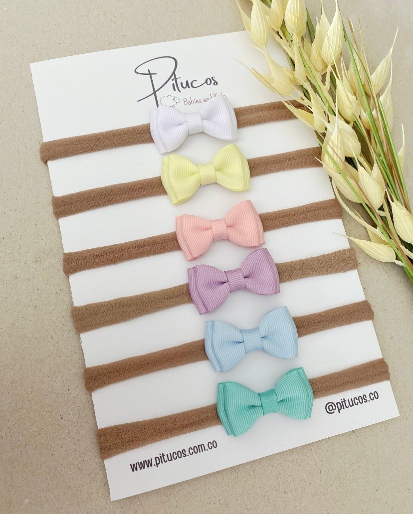 Kit conformado por 6 balacas con doble moñito elaborado en cinta.