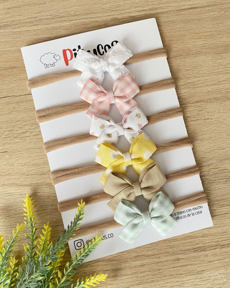 Kit contiene 6 moños Paula en tamaño pequeño o mediano.