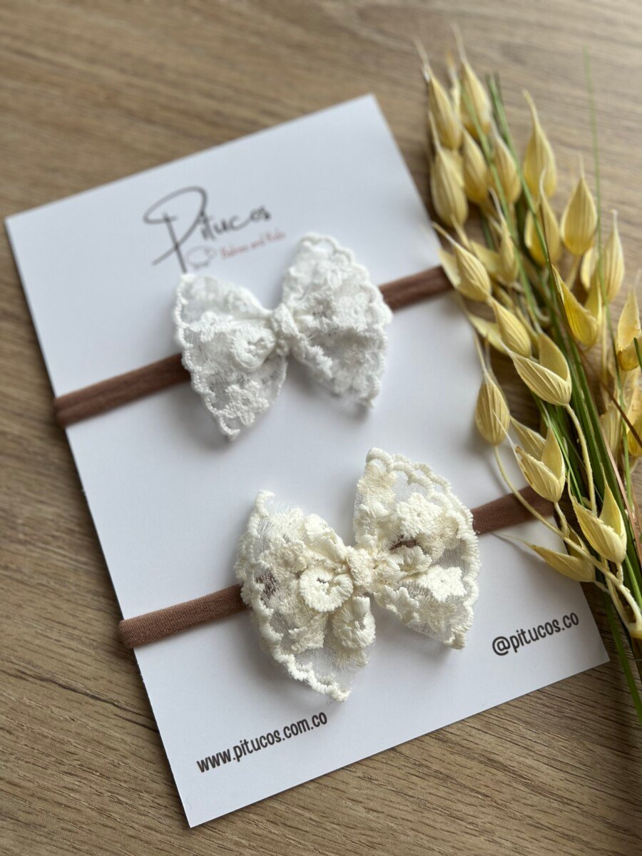 Lazo elaborado en el tull bordado en color blanco o marfil.