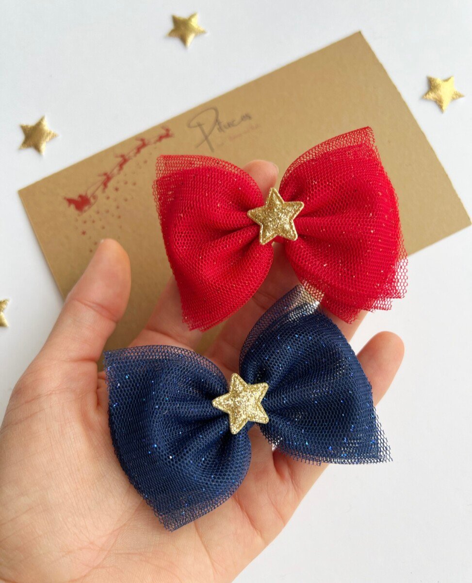Lazo elaborado en tull brillante con centro de mini estrella dorada brillante
