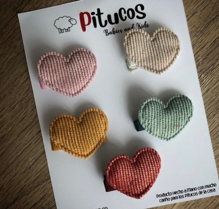 Mini pinza de 3 cm completamente forrada en cinta y aplique de corazón.