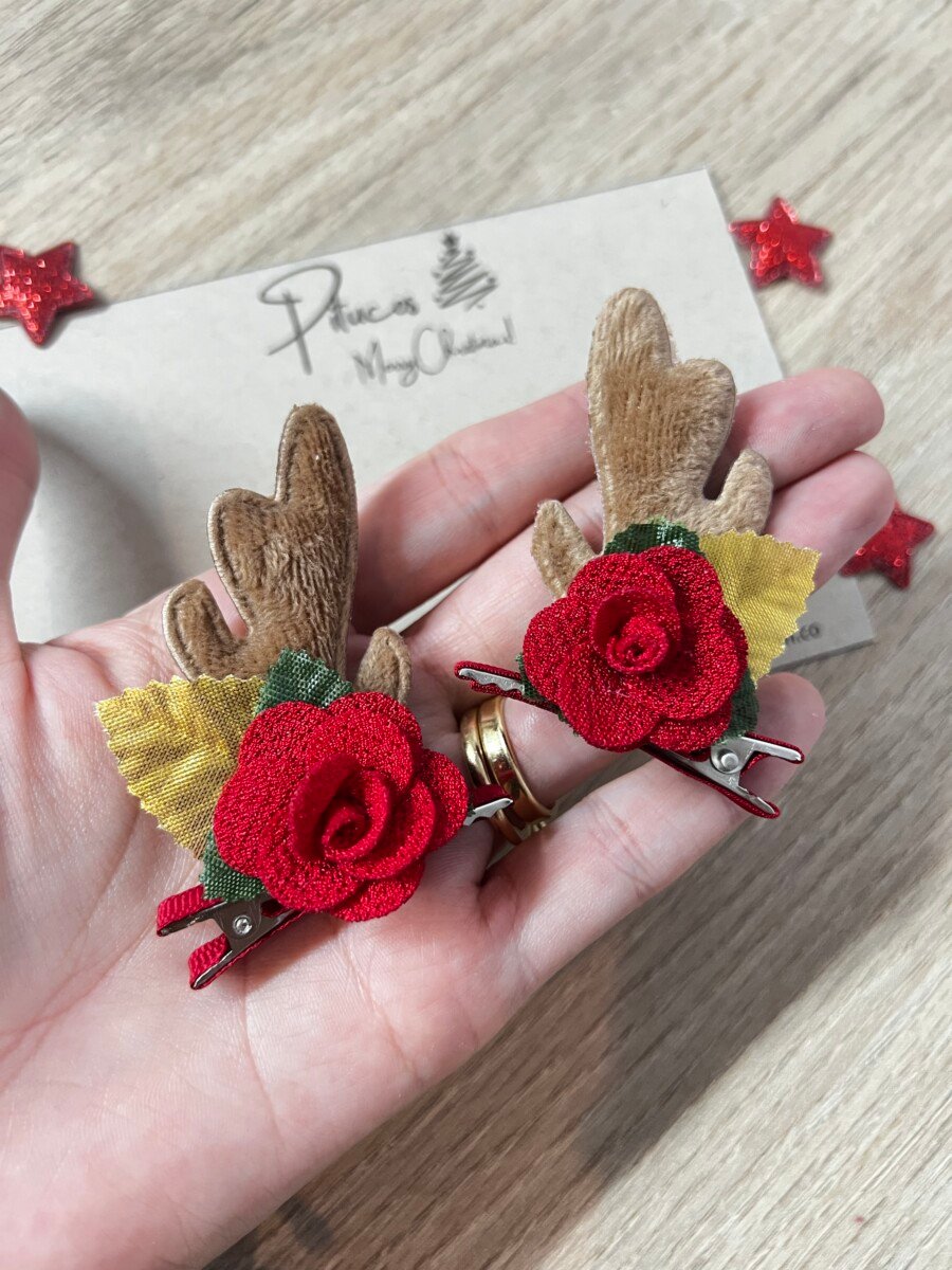 Pinza metálica de 4.5 Cm con aplique de astas de renita.