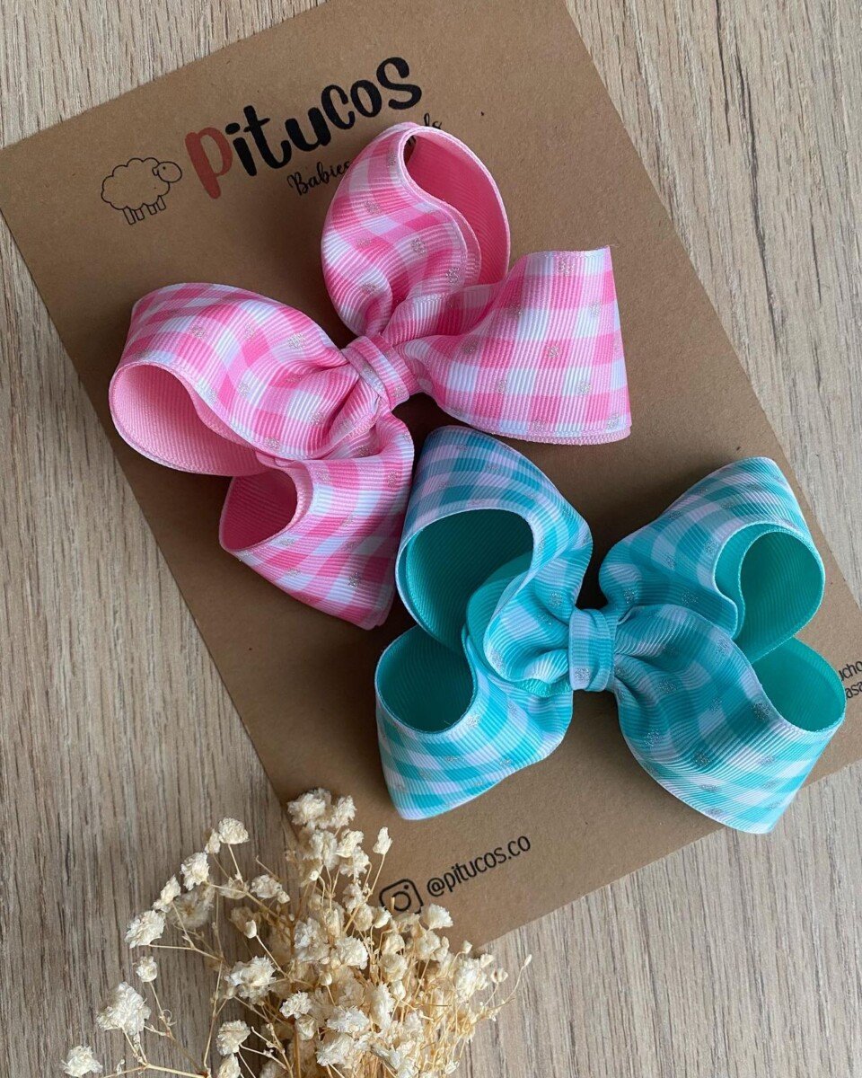 Pinza mediana (4,5 Cm) con moño elaborado en cinta de cuadros.