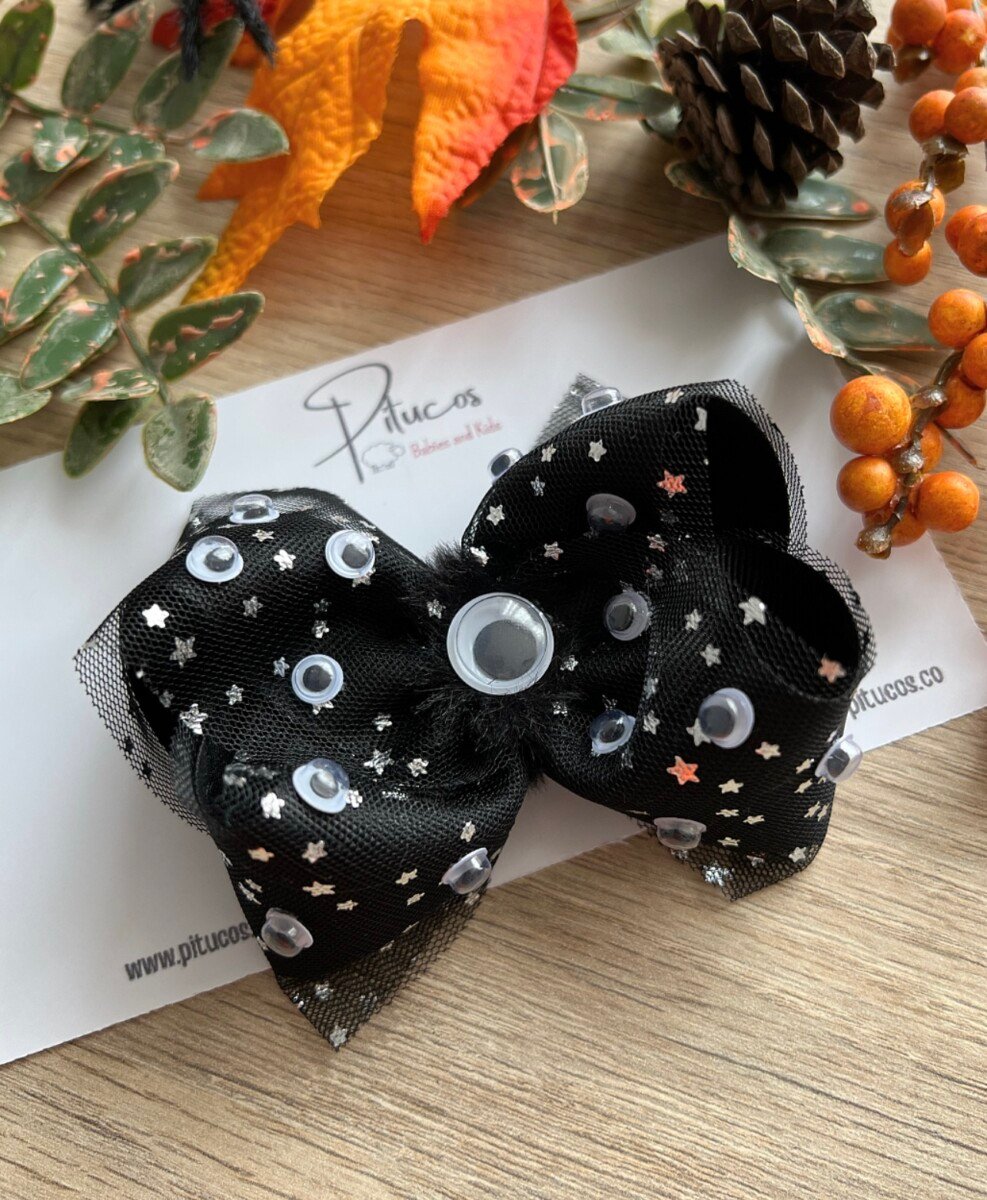 Lazo elaborado en cinta y tull con aplique multi ojos