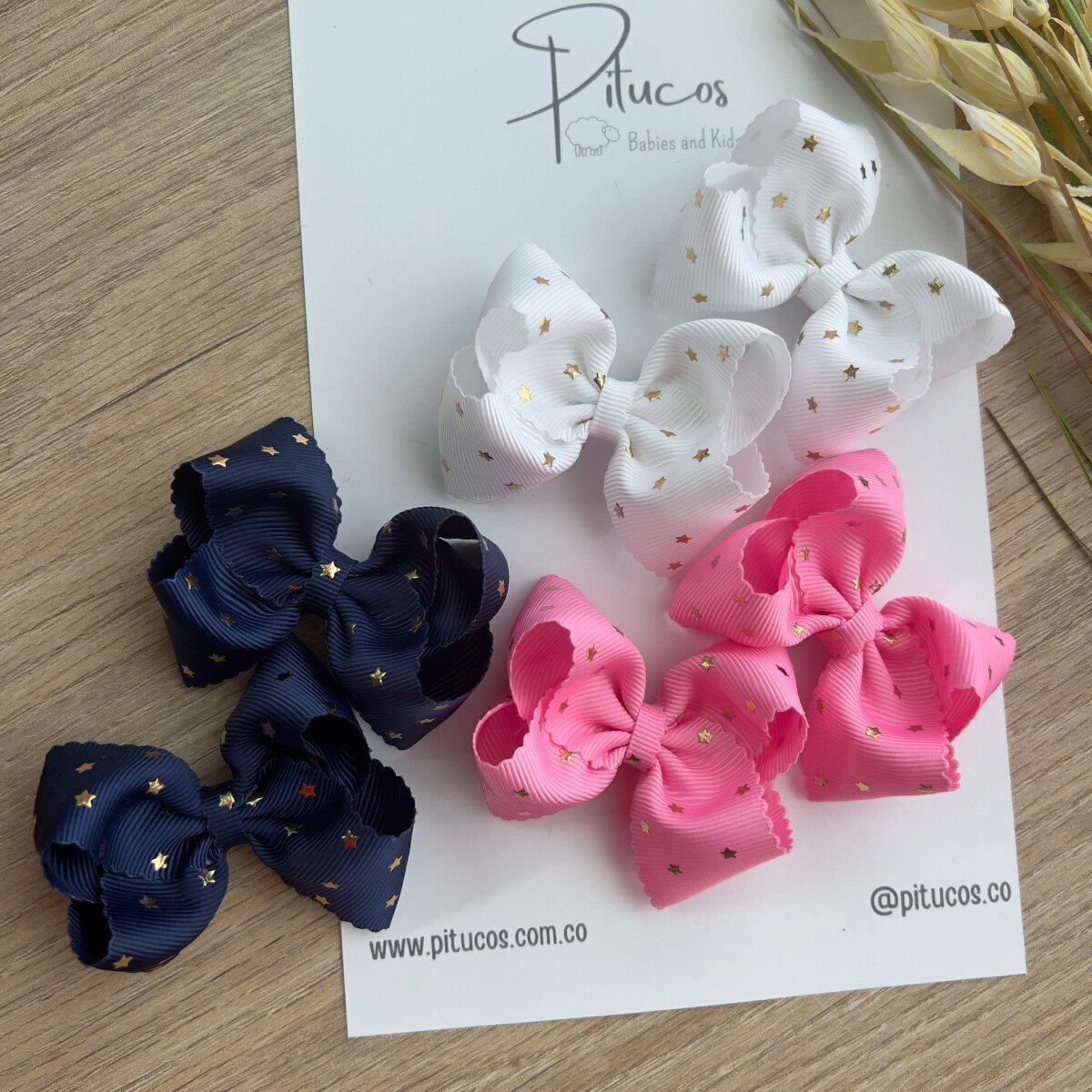 Lazo elaborado en cinta estampada de estrellas doradas.