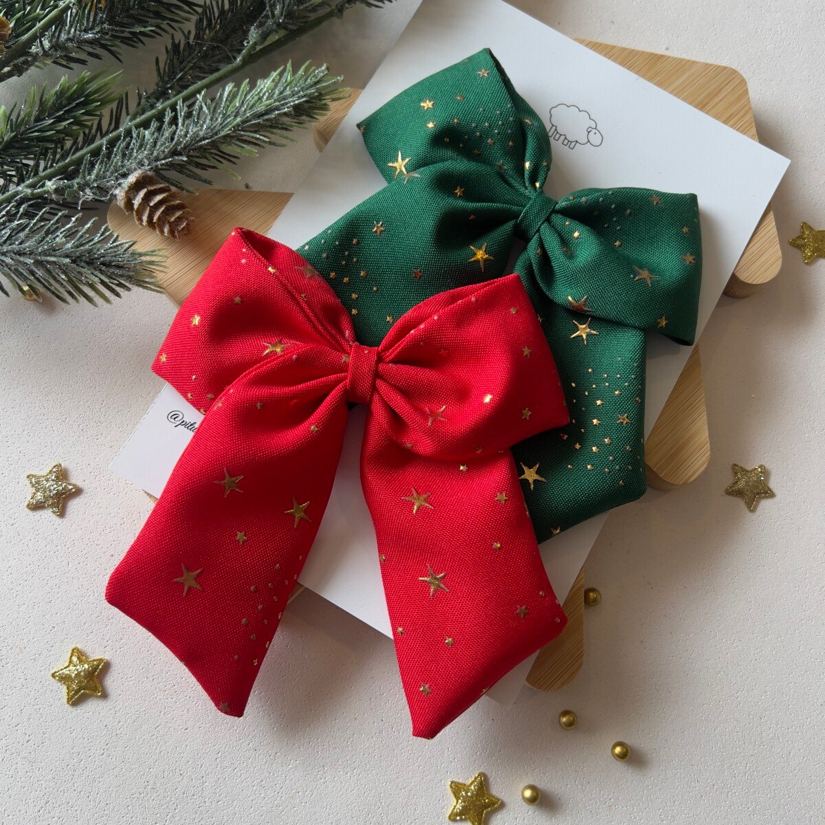 Lazo elaborado en tela verde o roja con estrellas doradas