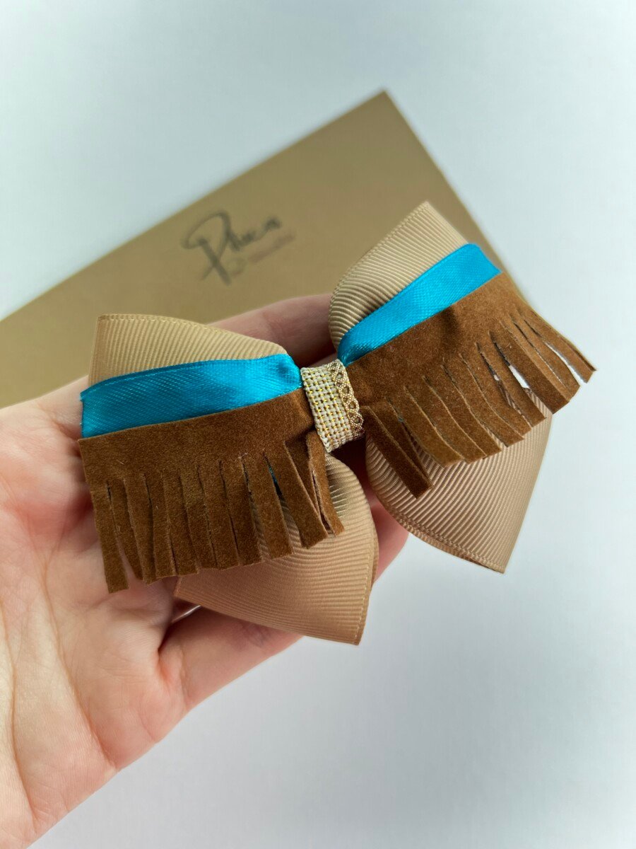 Lazo elaborado en cintas con flecos.