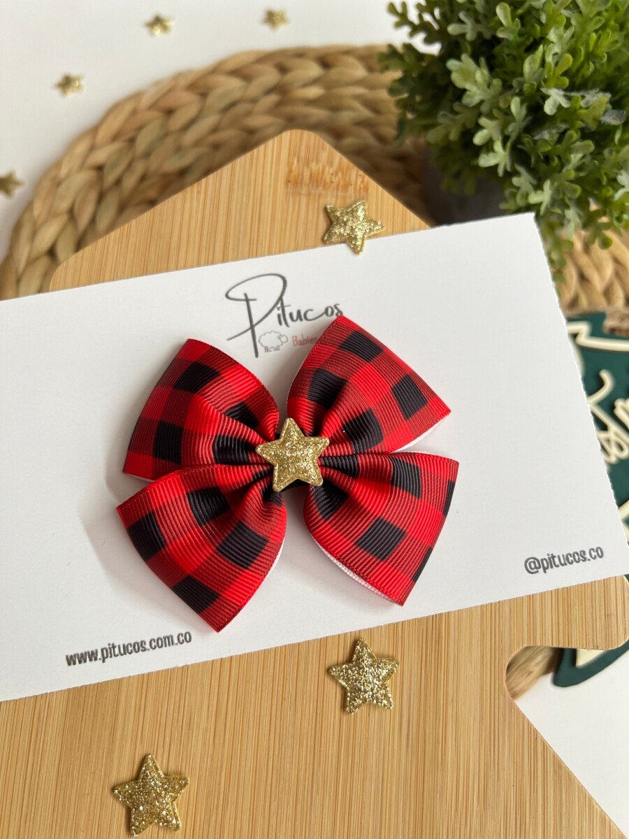 Lazo elaborado en cinta estampada de cuadros negro con rojo.